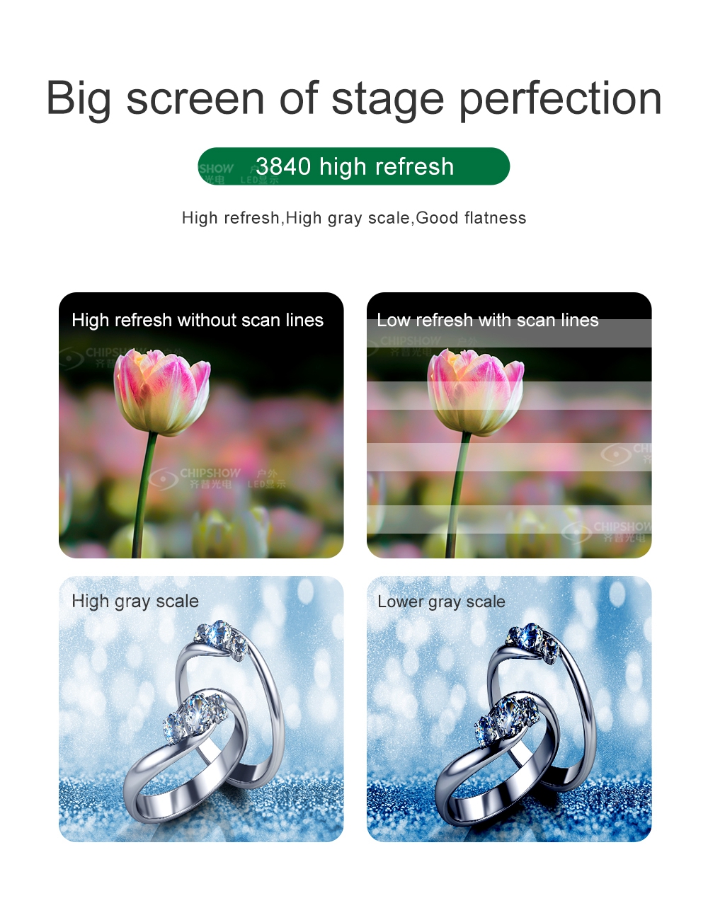 * Ideal for Stage Performances: With a high refresh rate of 3840Hz and 1/3000s shutter speed, capturing without scan lines or ghosting effects.