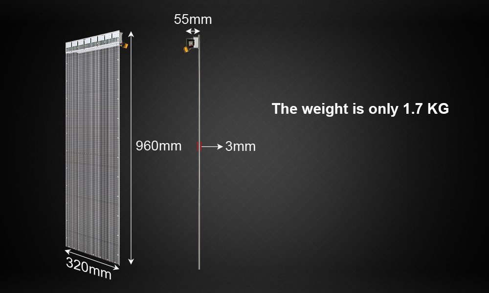 Spliced left and right or up and down, which can achieve a display height or width of 1.92 meters and unlimited splicing in other direction