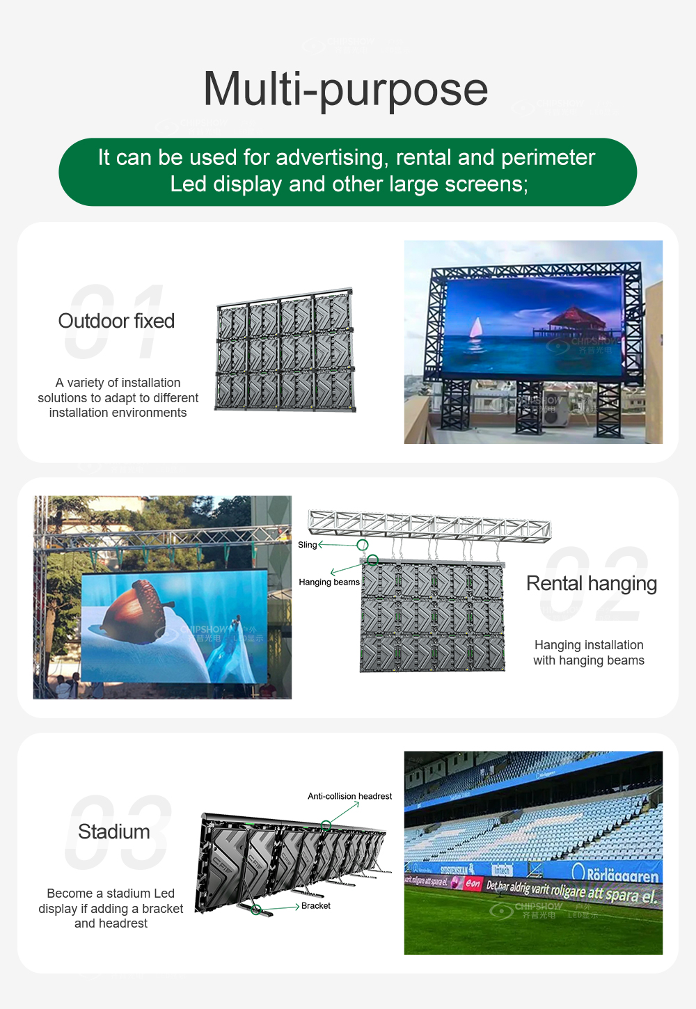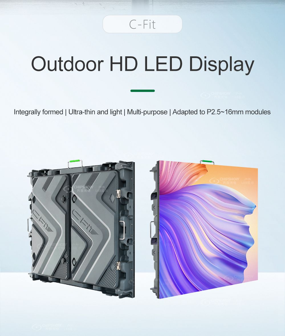 4 Multiple purposes: As a large display solution, the C-Fit series is widely used as outdoor advertising screens, stage rental screens, and stadium perimeter LED display screens; the C-Fit series is not only used as permanently wall-mounted screens but also used as ground-stacked screens for small events or spaces with low ceilings;