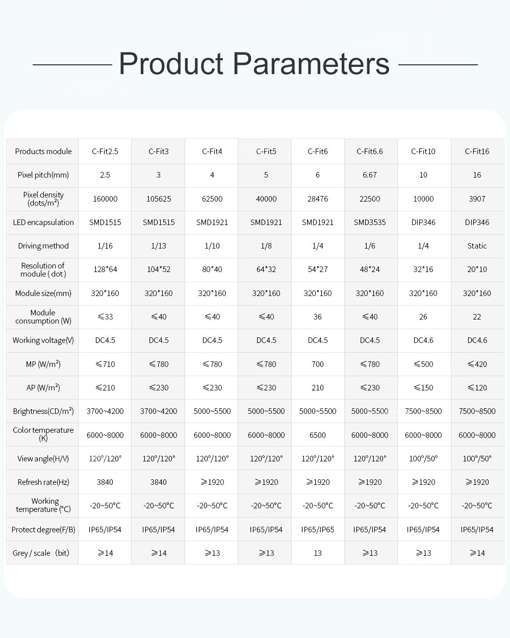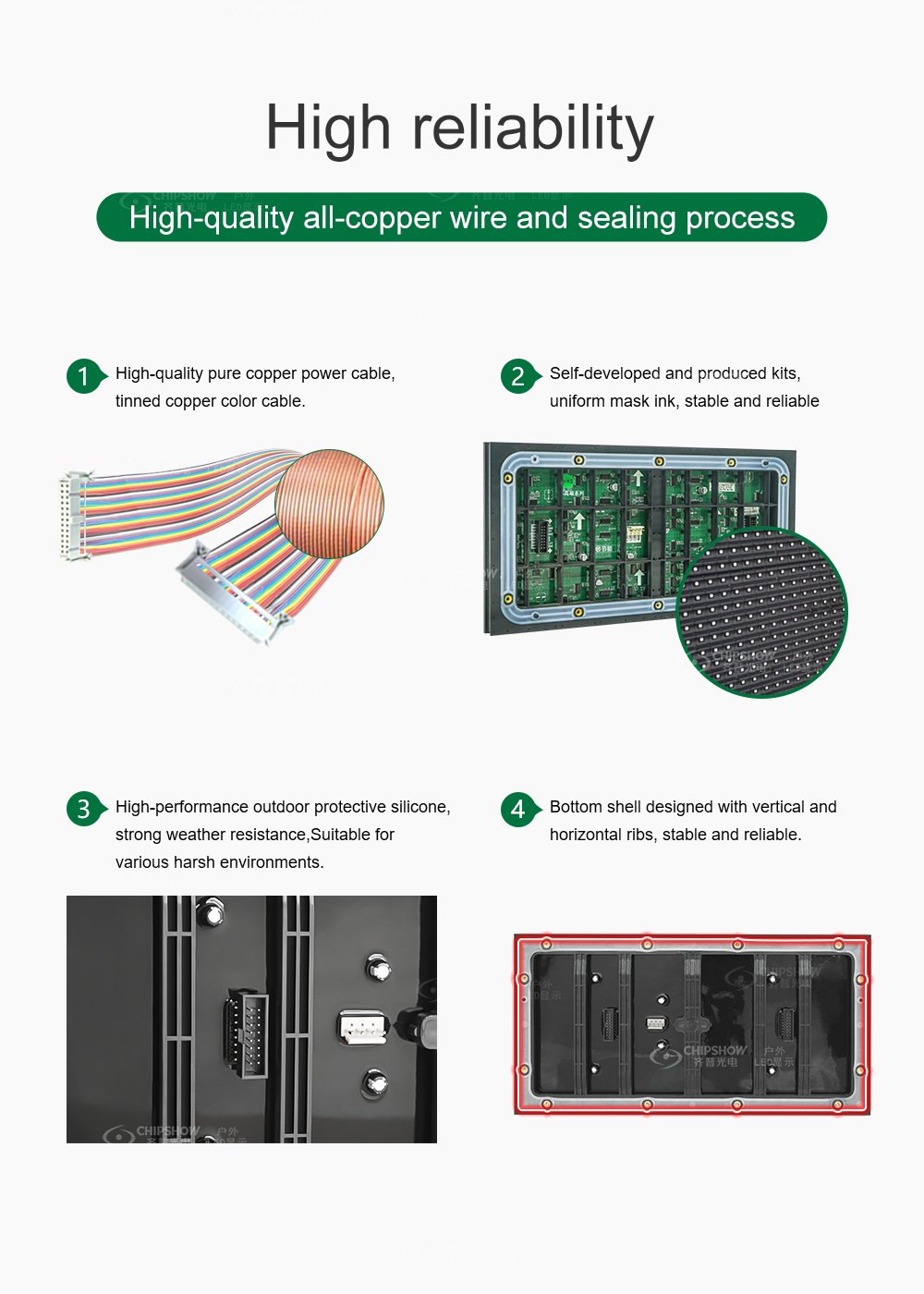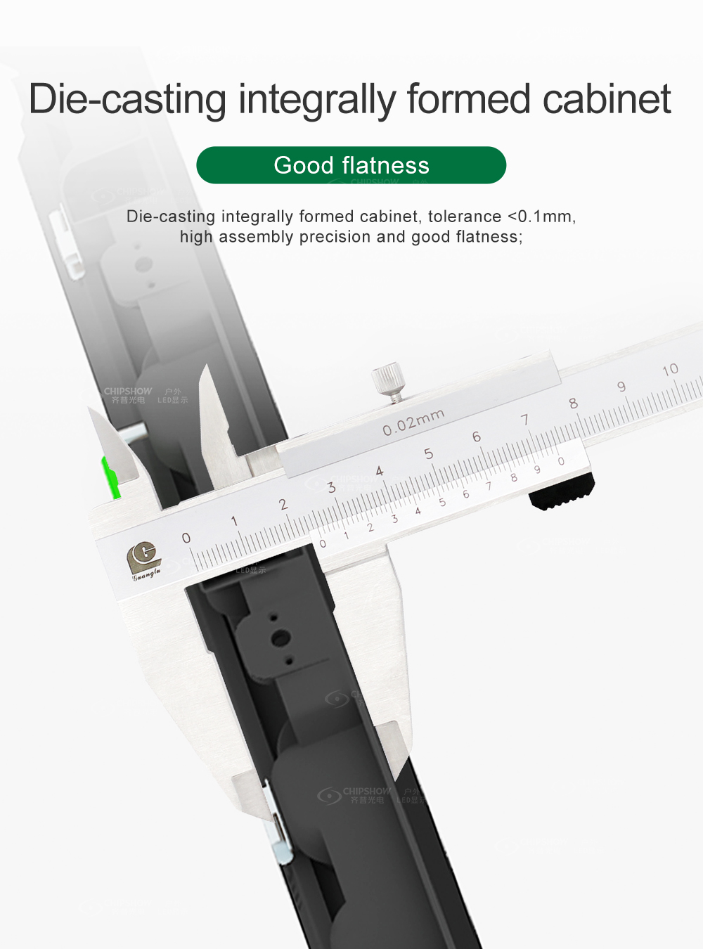 1 Good flatness: the screen adopts die-casting aluminum cabinets with a tolerance within 0.1mm;