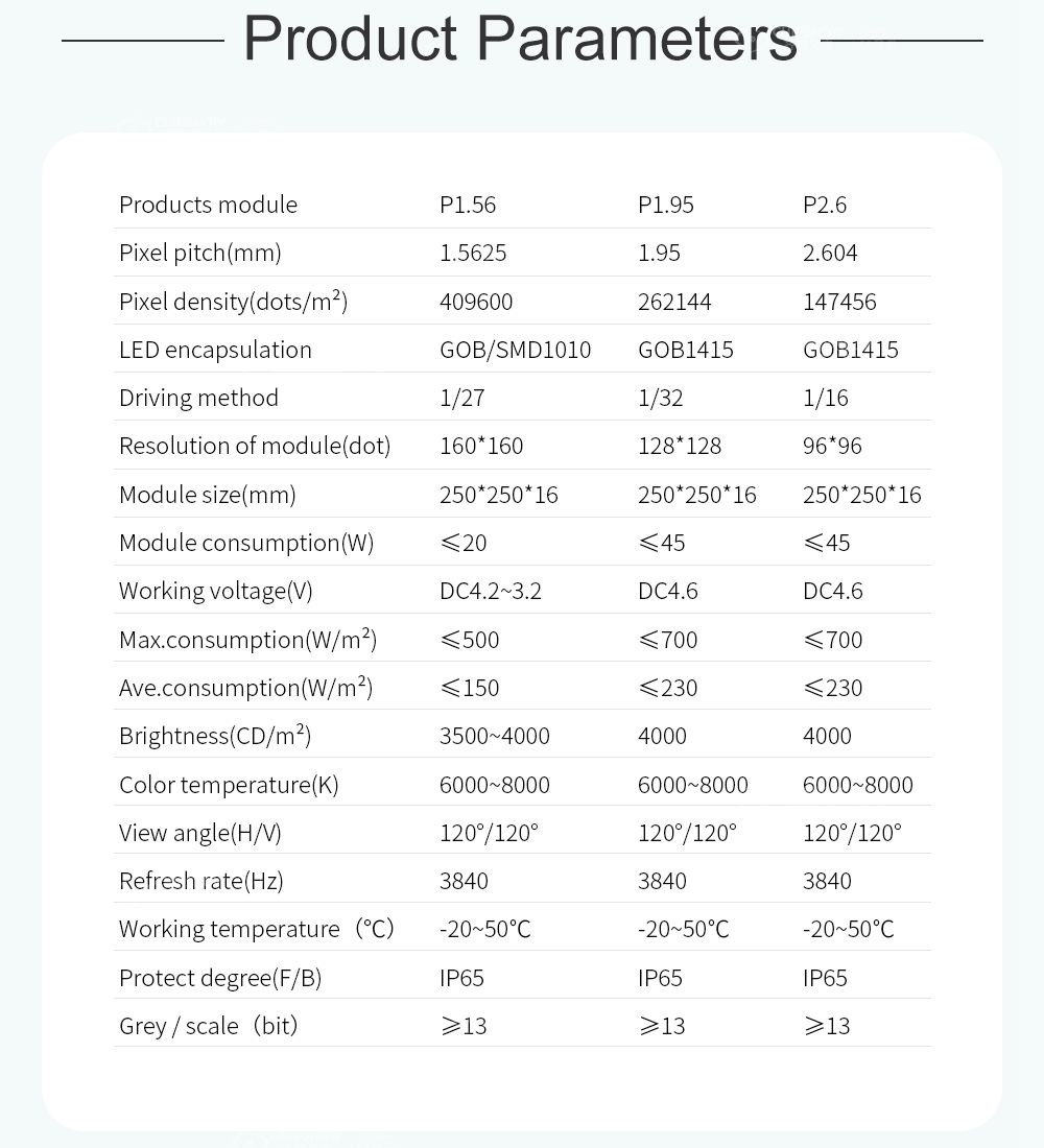 4. High protection: Corner protection+ anti-collision boss; Fully automatic protection of the surrounding Leds to avoid damage during transportation and installation;
