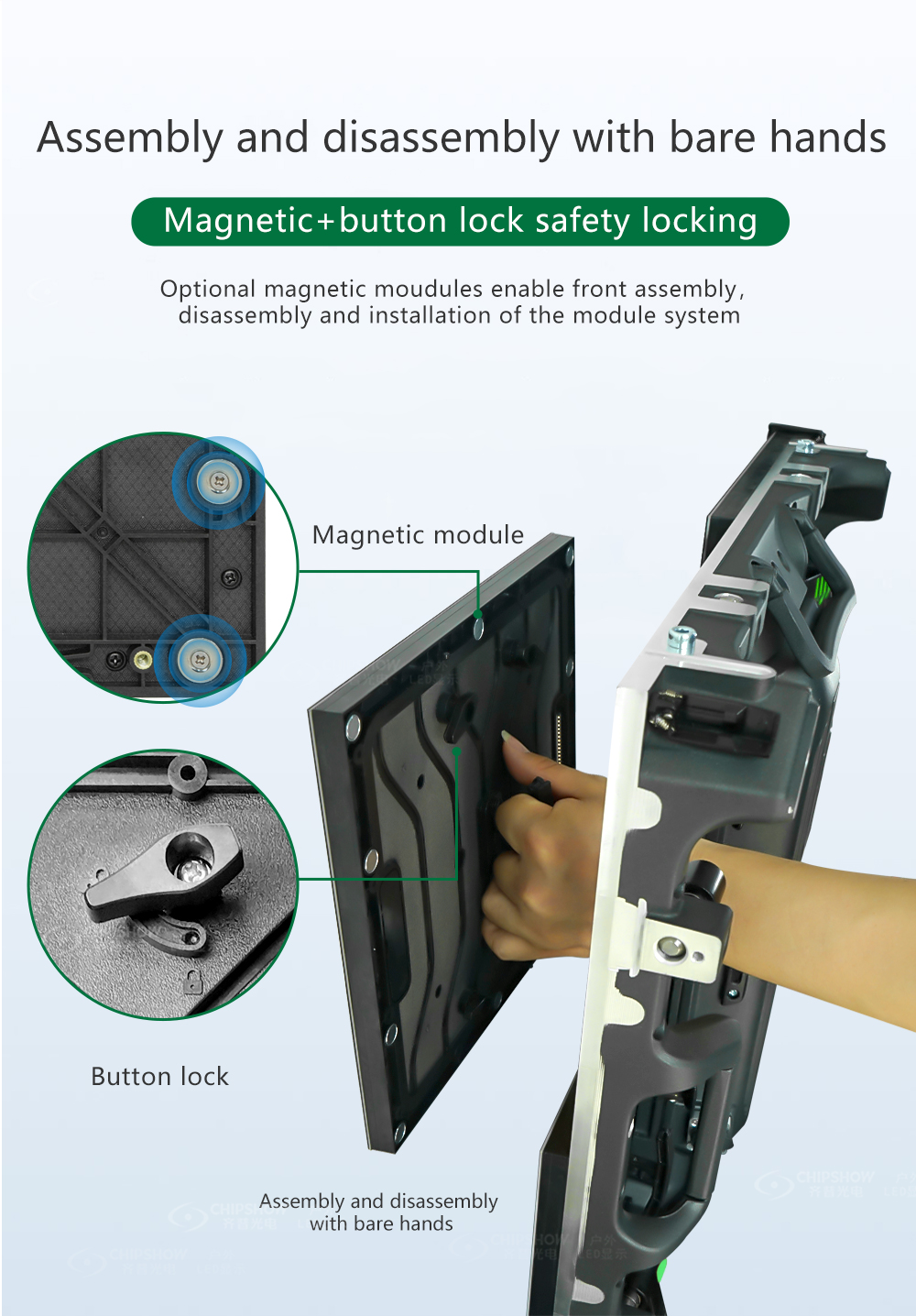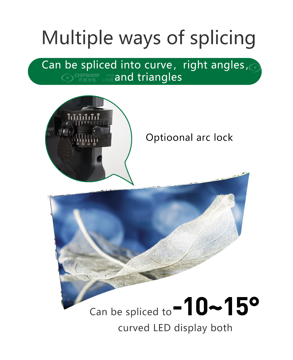 4. Optional curved lock, capable of splicing large screens with-10°~15 ° camber, 90°corner, etc;