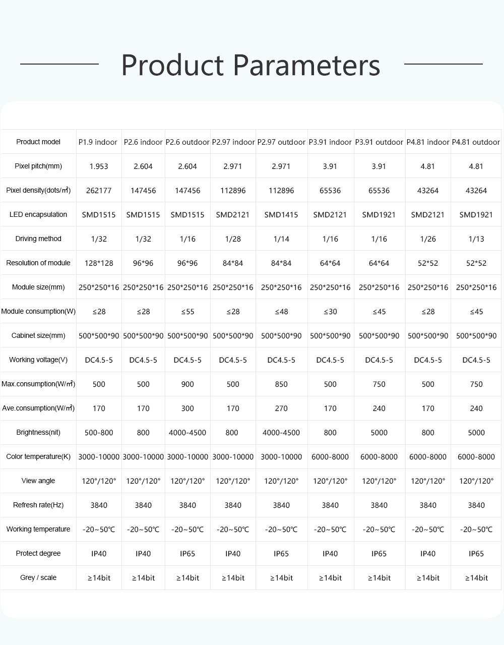 3.Both the 500x500mm and 500x1000mm cabinets use a minimalist mini control box of the same model and can be shared,Saving installation and calibrating time;