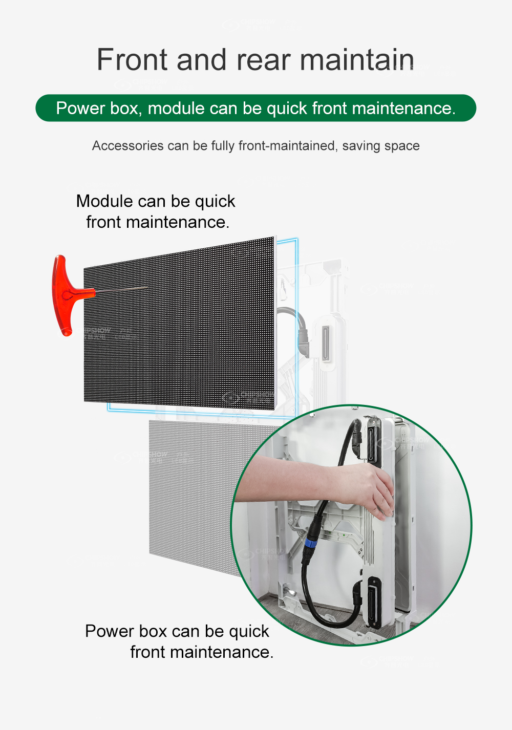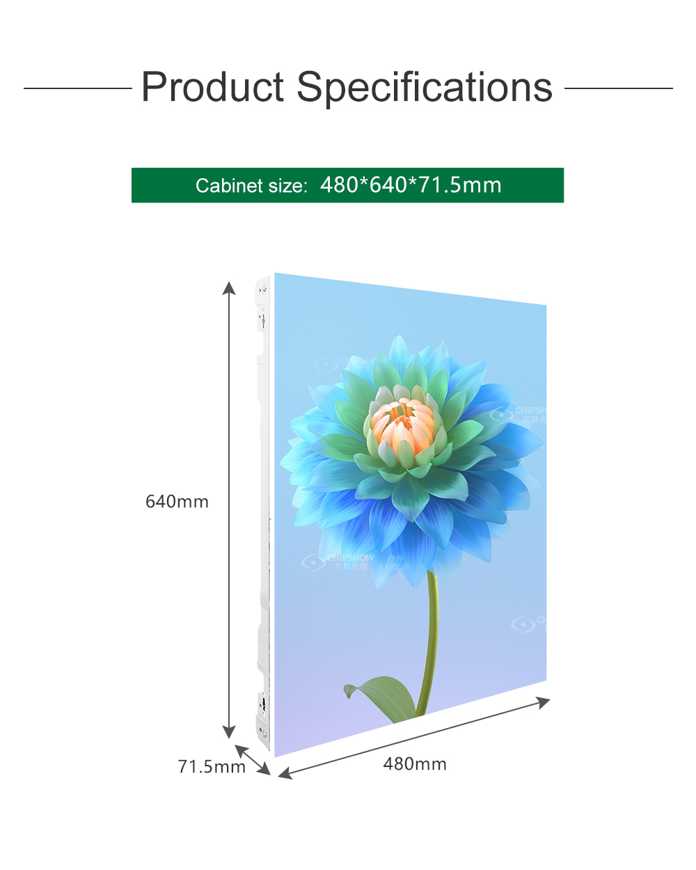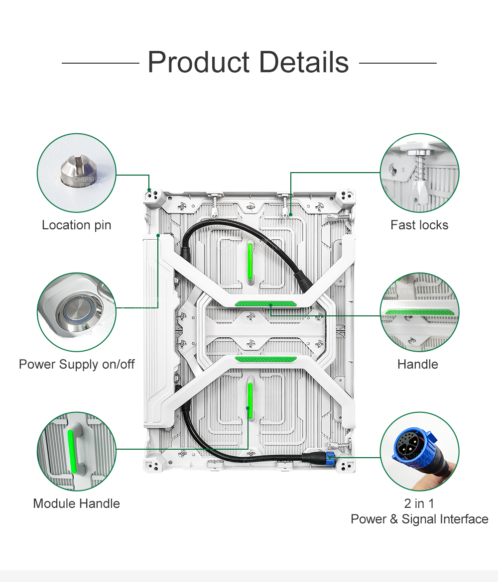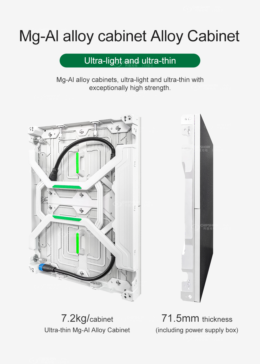 Ultra light and thin: the cabinets are made of magnesium alloy with excellent strength; every cabinet (size: 480mm * 640mm) is only 7.2KG in weight;