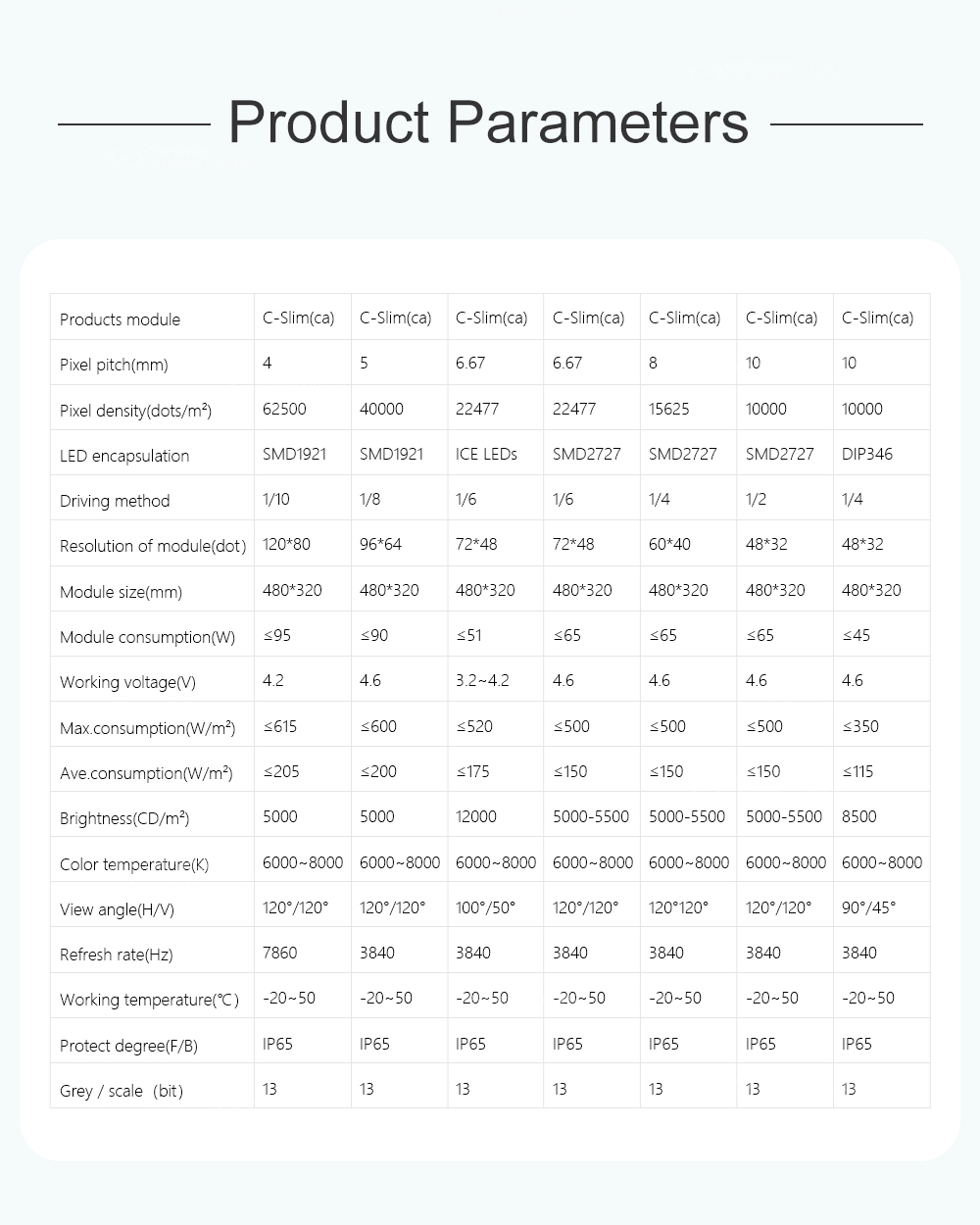Good waterproof performance: side waterproofing technology is applied between cabinets; the fully-enclosed modules are IP-65-rated waterproof and are ideal for outdoor use;