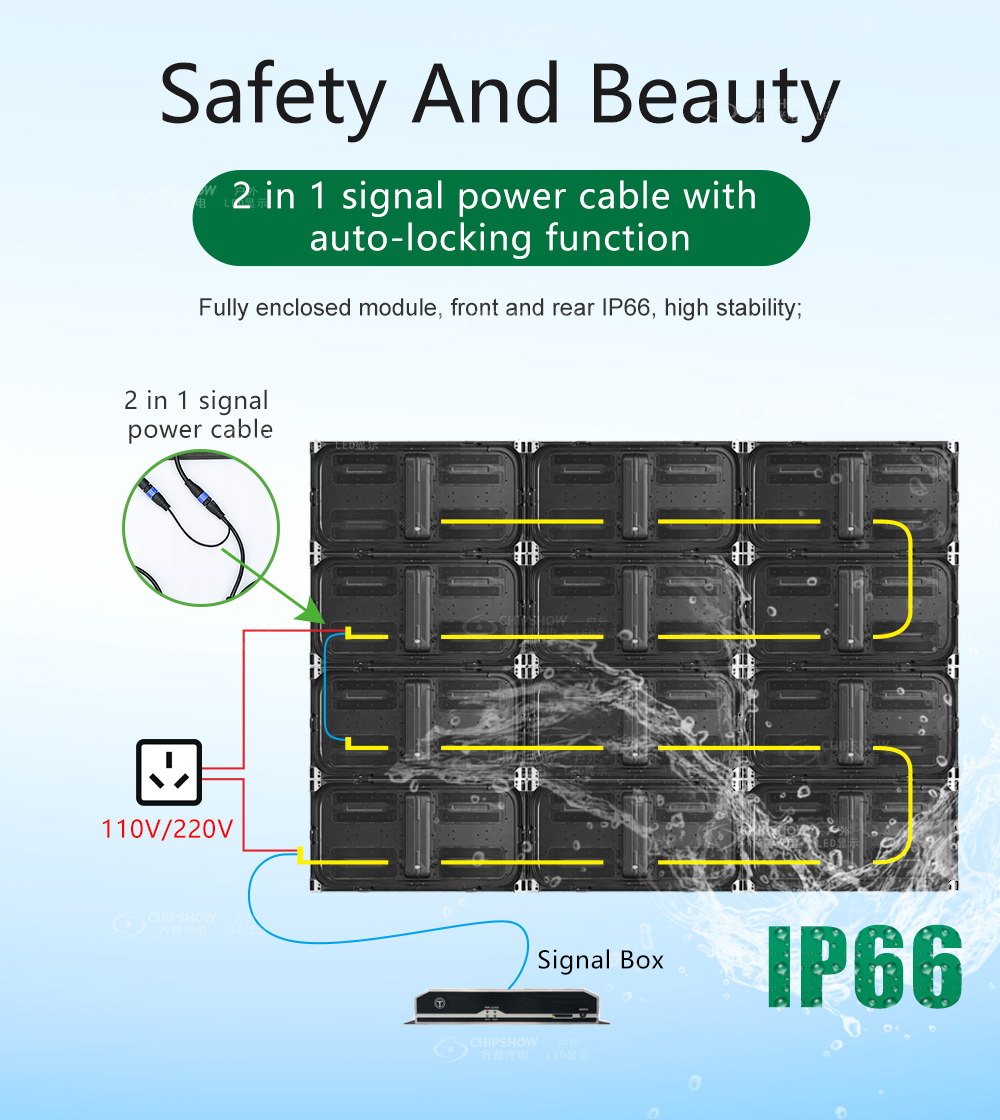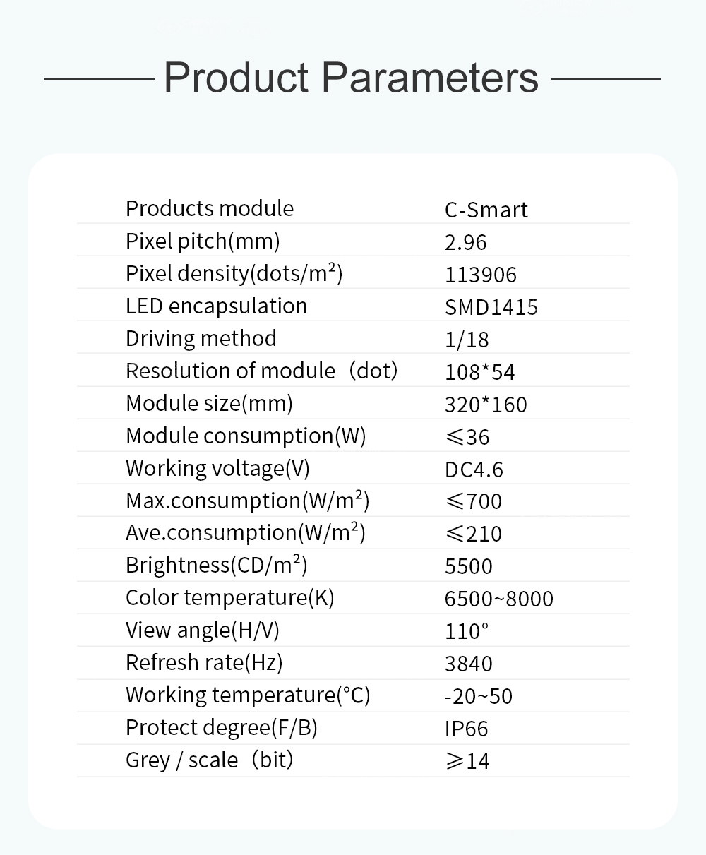 1 Low structural cost: the modules just require a simple bracket to form a big LED screen; the module’s weight is lower than 29 kg/㎡; this can help you save transportation costs and load-bearing structures;