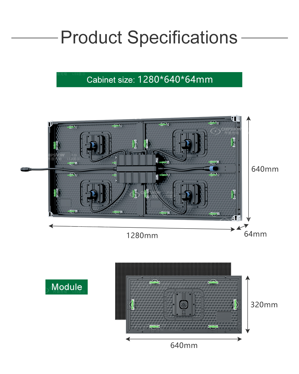 4 Self-expansion: the big-sized modules (size: 640*320 mm) can be seamlessly spliced due to their excellent flatness; you can quickly build screens with different sizes;