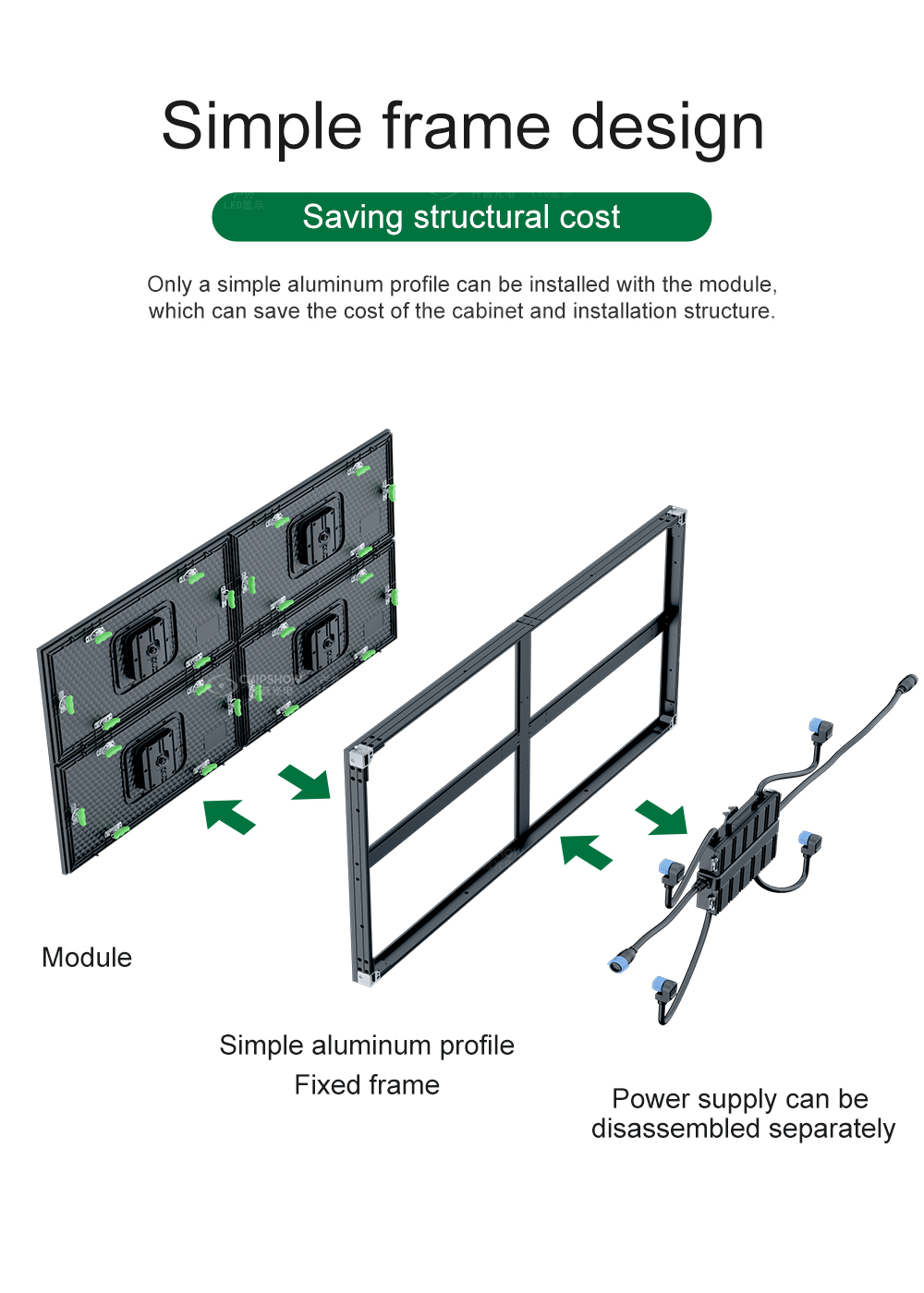 5 Quick screen connection: the modules adopt 2-in-1 signal power cables for convenience of quick connection and installation; in addition, the wiring is also relatively tidy;