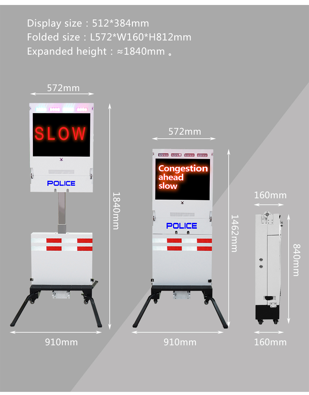 Portable traffic warning sign is for traffic accident scenes, security checkpoints, drunk driving inspections, and various emergencies.