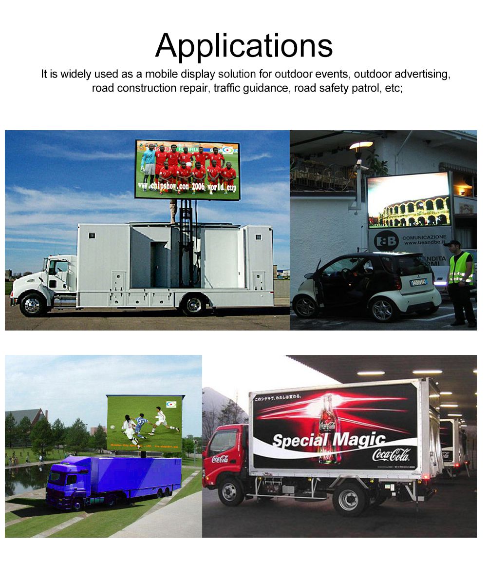 4. Solar charging+9.6KWH large capacity battery, which can continuously power on the LED display 365 days a year;