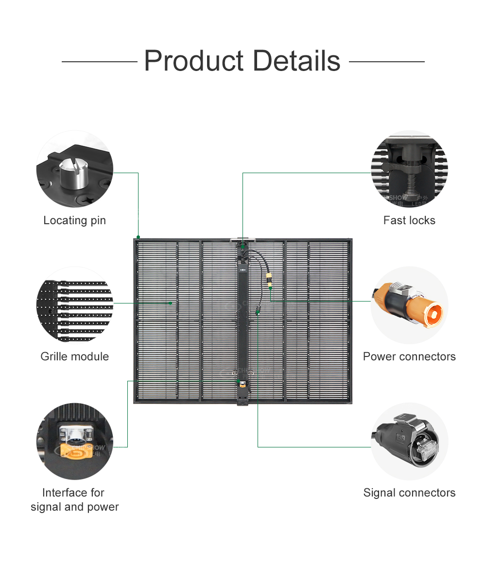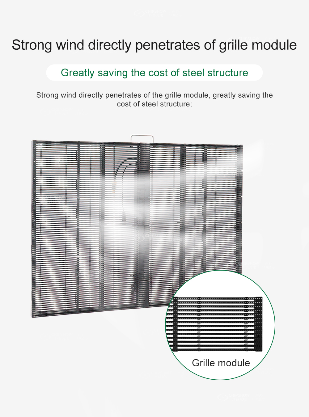 4 High ventilation: the grid-shaped LED modules ensure that wind can directly pass through gaps between grids; this will save you a significant cost that should have been used in the enhancement of the steel structure;