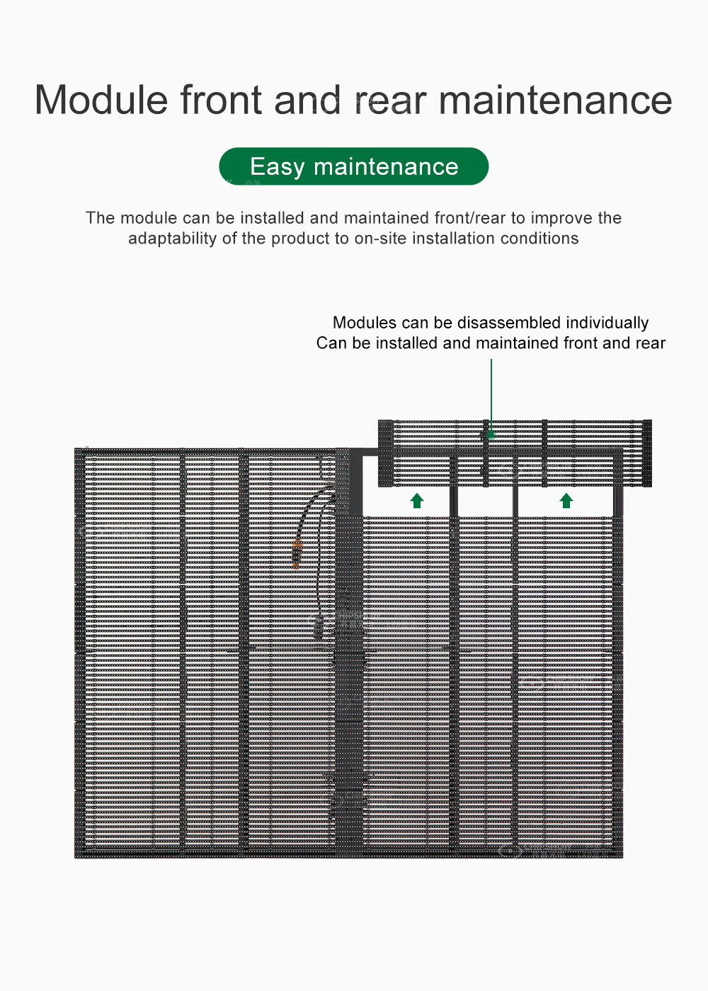 5 Front-And-Rear maintenance: you can install and maintain the screen from its front and back, so it has a very loose requirement of on-site installation conditions;
