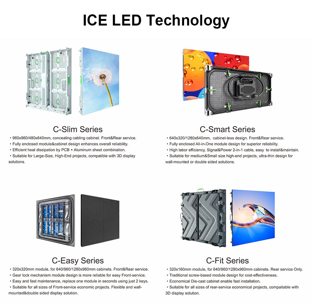 The features of “ICE” LED technology (it is a self-developed display solution that is based on independent encapsulation of RGB LED beads and common-cathode energy-saving circuits):